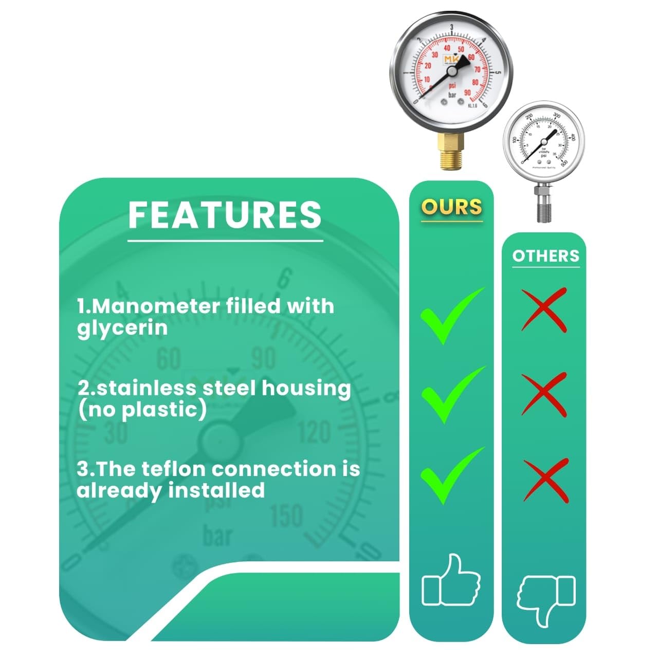 - 【 🛍️ MANOMÈTRE 】 Manomètre de marque MK MEASURING rempli de glycérine en acier inoxydable