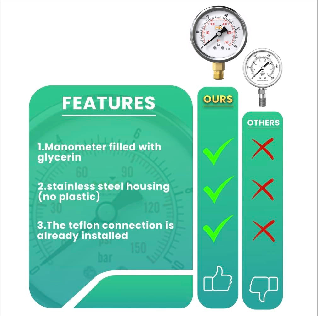 - 【 🛍️ MANOMÈTRE 】 Manomètre de marque MK MEASURING rempli de glycérine en acier inoxydable